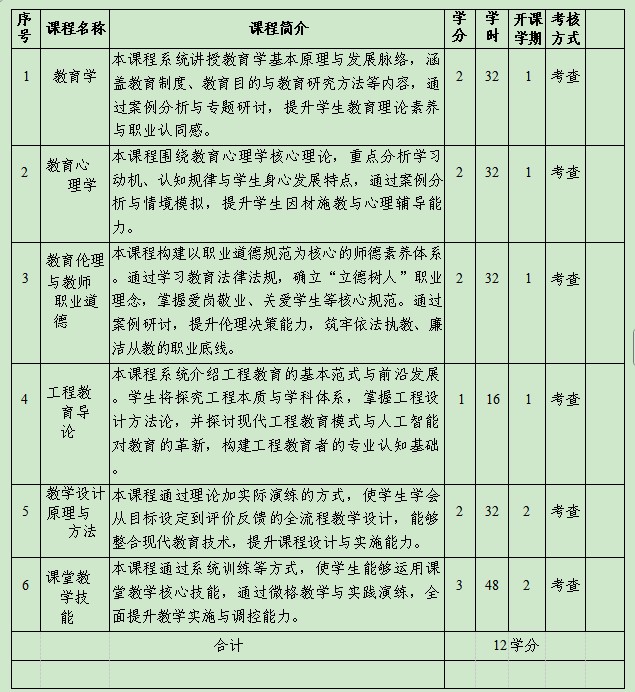 本专业面向职业教育发展需求,依托学校工科特色,聚焦工程教育领域教学能力与职业素养培养,兼顾通识教育要求,主要为内蒙古及周边地区中职、高职和职业本科院校培养高素质“双师型” 师资。专业注重师德师风与现代职教理念培育,强化教育教学能力与工程实践能力协同发展。通过“教学做一体化”的模块化课程体系,使学生掌握教育学与教育心理学等教学理论,具备教学设计、课堂组织、教学评价与反思能力;引导学生系统理解工程专业知识与产业技术发展,将工程实践和行业标准有效转化为教学资源;同时融入课程思政与职业发展指导,培养具有工匠精神、社会责任感和工程背景的专业化教师,服务区域现代职业教育高质量发展。